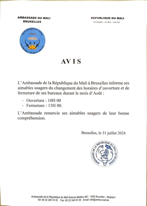 Avis aux Représentants des Partis Politiques Maliens de la juridiction de Bruxelles relatif à la création de la Commission Administrative chargée de la révision annuelle des listes électorales 2024